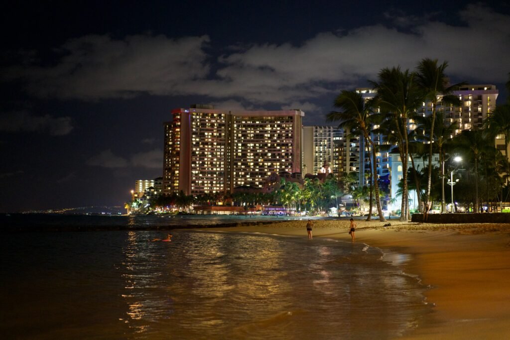 We decide to drive up the coast line a little further up and stop at a popular beach. Lots more cars are parked at this one, and some are having tailgate parties at past midnight. Oahu is fun ya’ll. The rain disappears, and we’re left with moonlit cloudy skies and an air of anticipation. Now that we know Eli has superior night vision, he scopes out an area as we head away from the parking lot and near the waters. All smiles, a little scared and a little giggly, I listen to the waves gently crashing and the mens’ assurance… and reassurance.