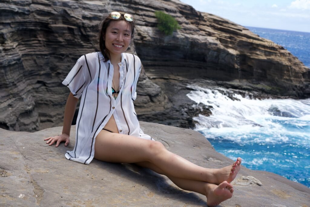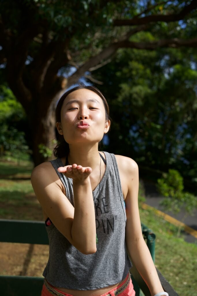 I ride shotgun, and Lay gets into the back. It’s an open Jeep, so we hear a wild cacophony of wind and waves as we drive up the coastline. It’s difficult to hear each other, so we keep the conversation in the car short. And my god, the views. Under starlight, the ocean’s blackness, twinkling Oahu lights, shadows of greenery, and attractive company. A shot of adrenaline courses through my body, and my goosebumps surface on my arms. Lay starts to massage my shoulders from the back. His proficiency in body language is over 9000. I’m a lucky girl indeed.